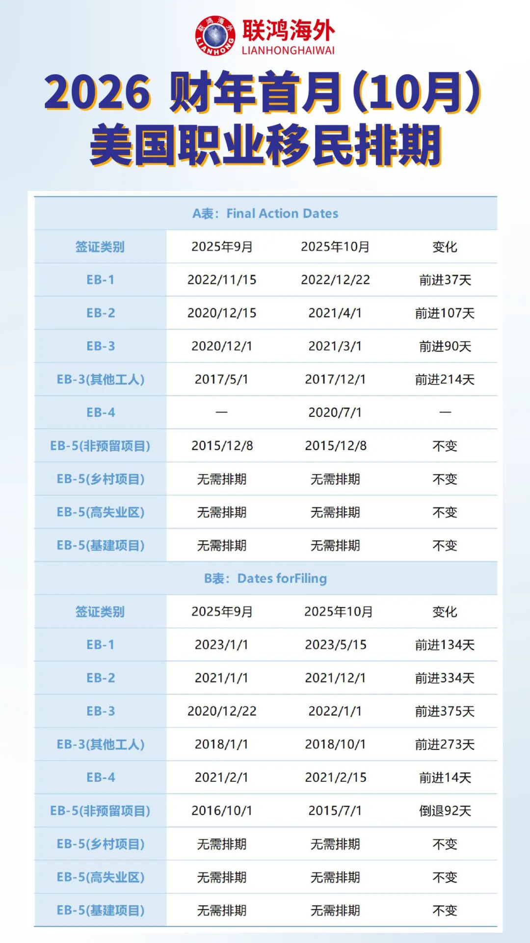 2025年10月,美国移民领域迎来重要政策动态,美国公民及移民服务局(USCIS)与国务院相继明确,就业类(EB)移民申请相关规则调整,其中“Dates for Filing(表B,可递交日表)”的启用,为符合条件的境内申请人带来显著便利,成为本月移民政策焦点。
