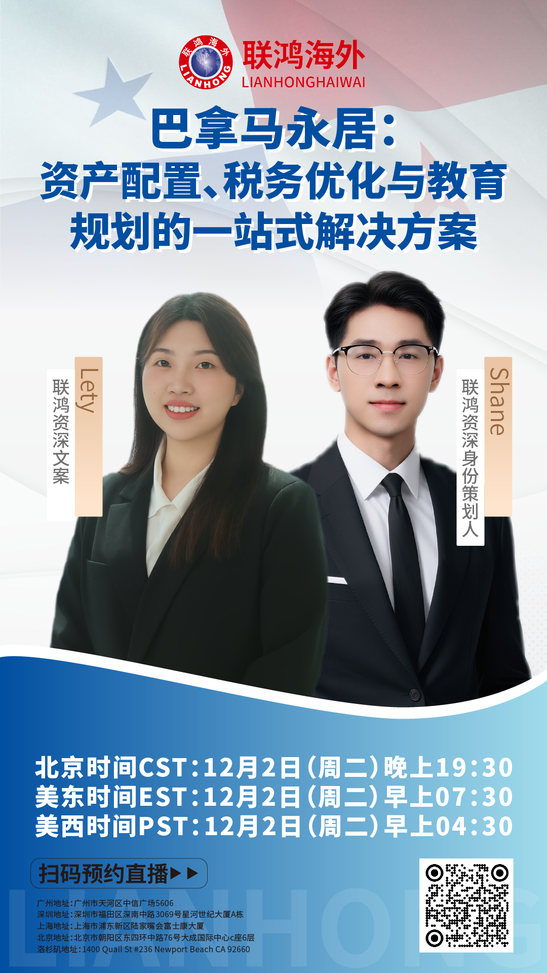 12月2日19点30:巴拿马永居:资产配置、税务优化与教育规划的一站式解决方案