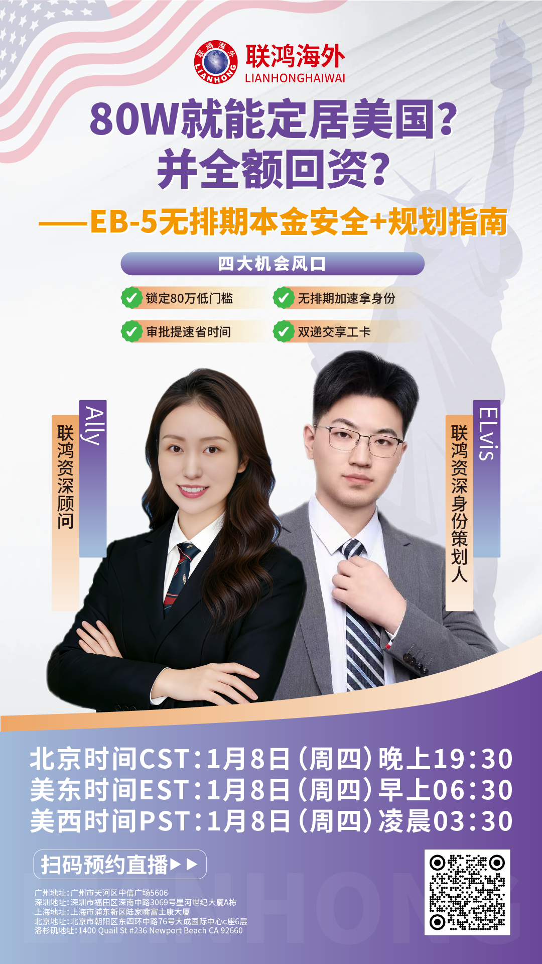 1月8日19点半:26年上半年80万拿美国身份并本金全返?