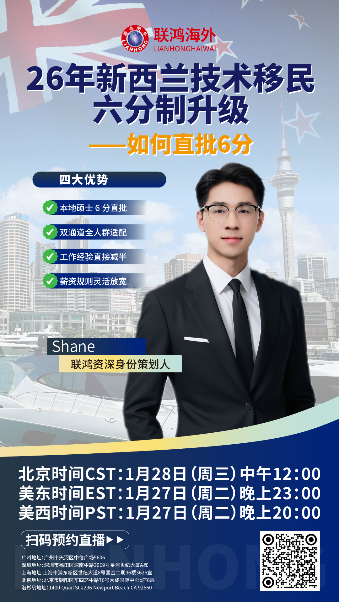 1月28日12点:26年新西兰技术移民六分制升级—如何直批6分