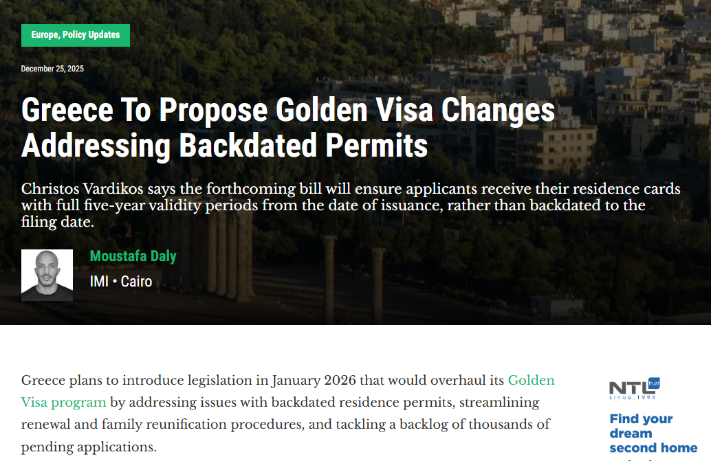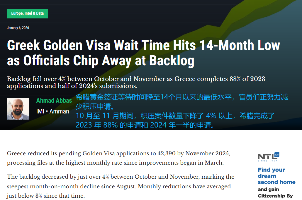 此次改革的核心目标之一的是清理数千份待处理申请积压。截至2025年11月,希腊黄金签证待处理申请已降至约42,390份,处理速度创计划启动以来新高,2026年后审批周期有望进一步缩短。