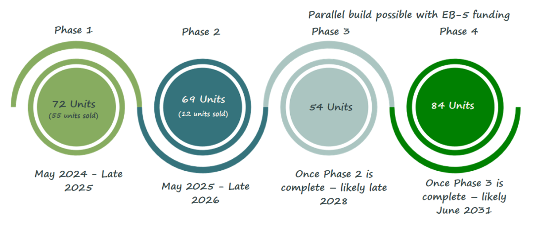 5.项目预计总收入超过5亿美元,还款能力强:预计总收入为5.65亿美元,利润率为2.52亿美元,显示出强大的回报潜力,以支持EB-5贷款偿还;
