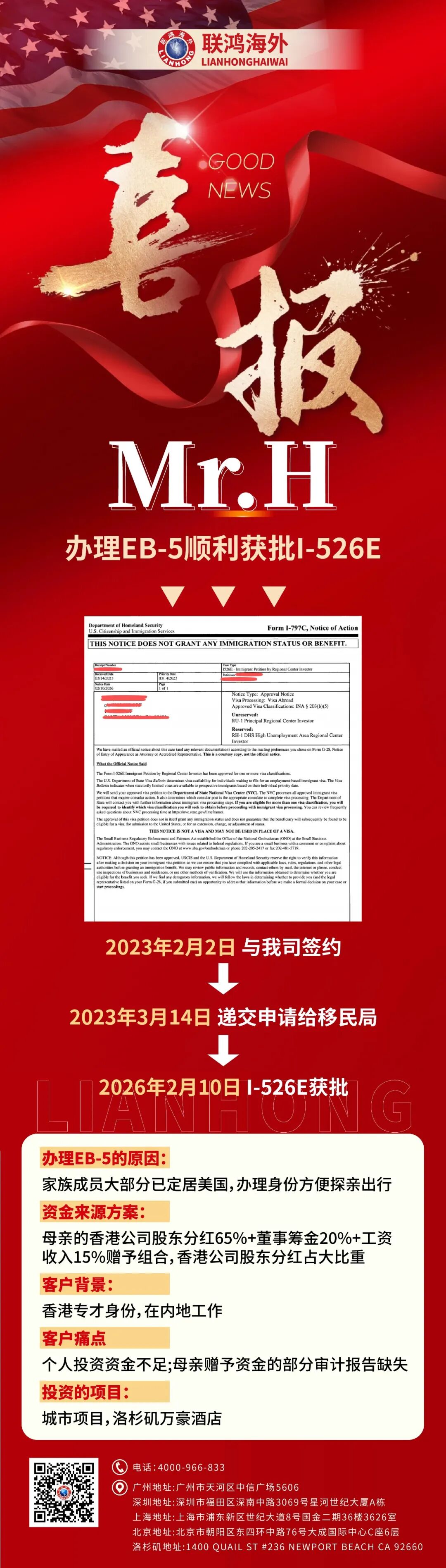 组合型资金来源 65%分红+20%筹金+15%收入 | 顺利上岸EB-5【最新案例】