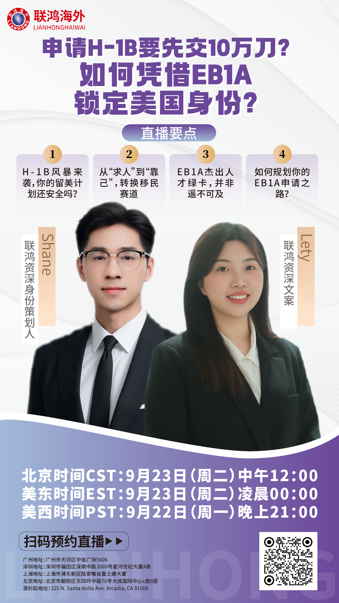 9月23日12点:申请H-1B要先交10万刀?如何凭借EB1A锁定美国身份?