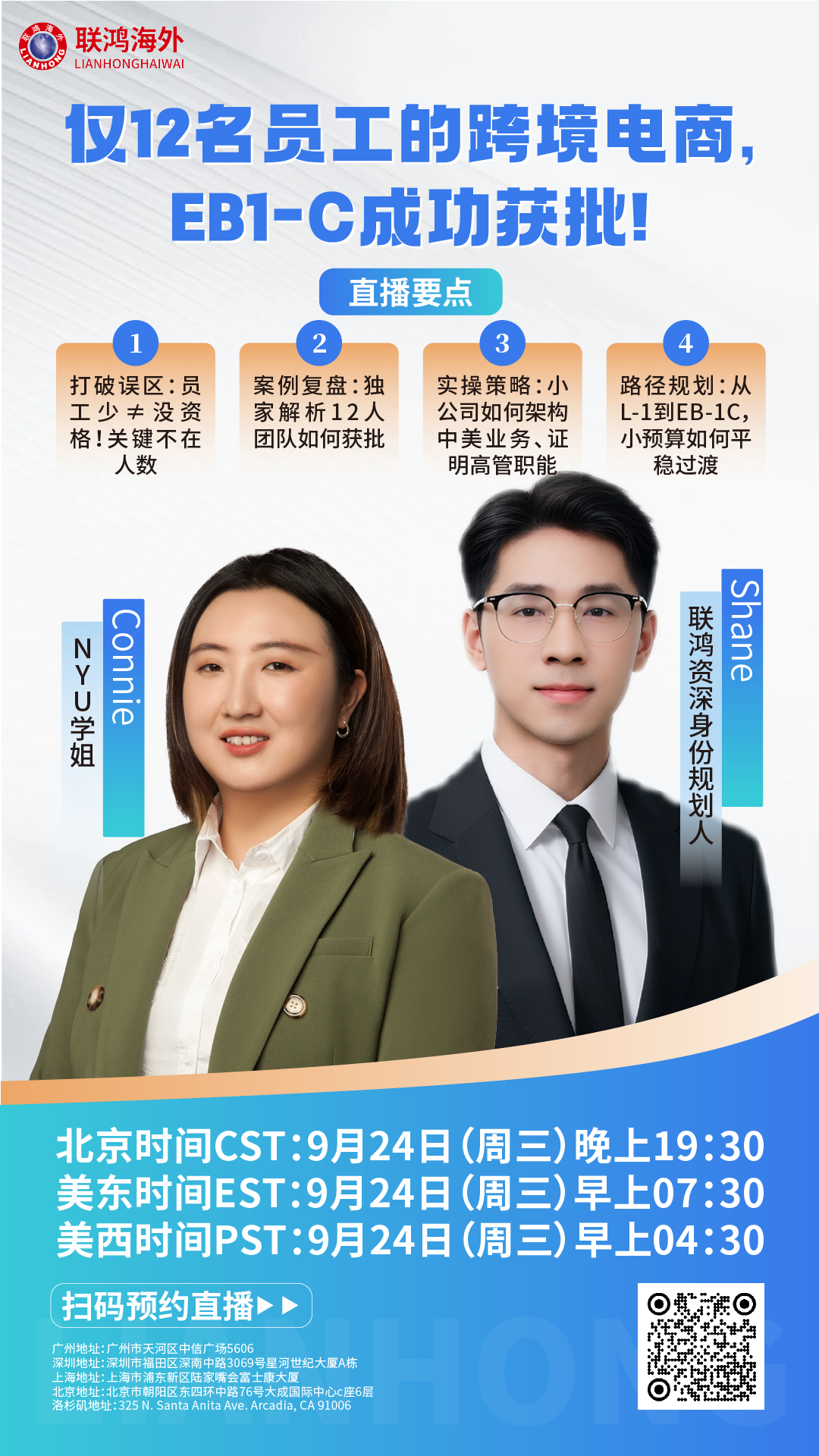 9月24日19点30:仅12名员工的跨境电商,EB1-C成功获批!