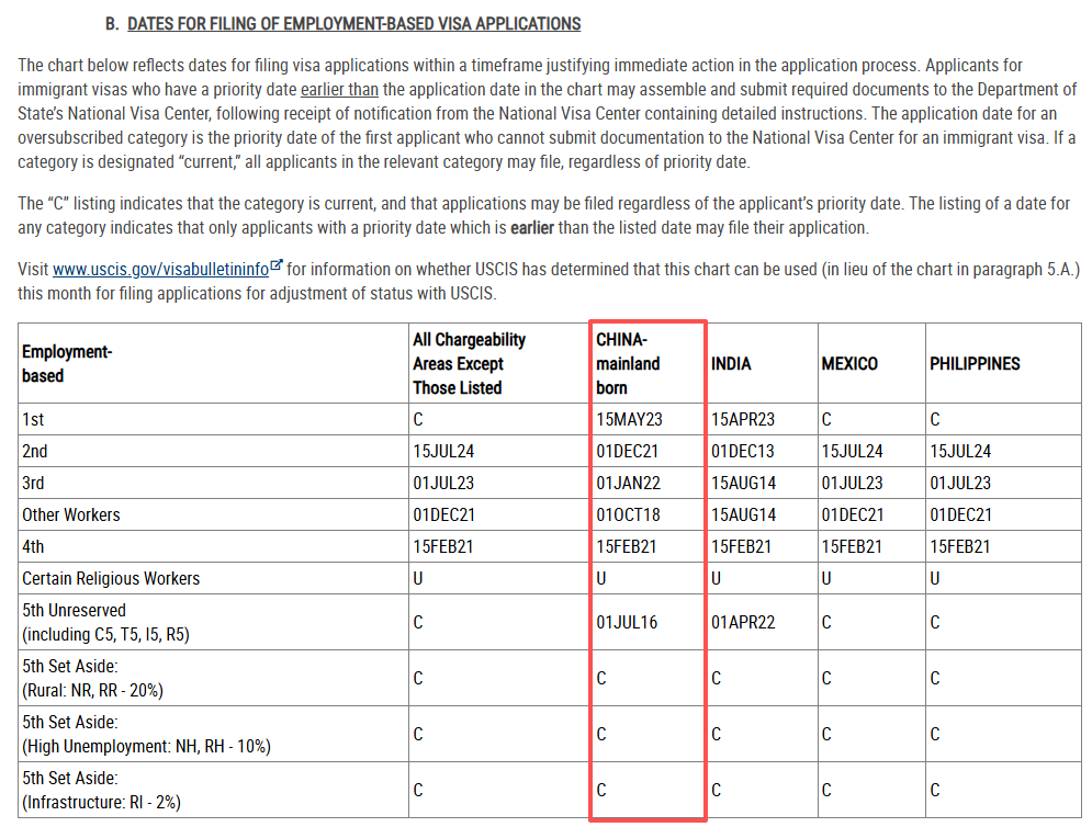 注:2025年11月职业移民表B开放,这意味着人在美国的职业移民申请人,优先日在表B之前且满足其他递交I-485申请的条件的,可以在美国本土递交I-485转换身份申请。